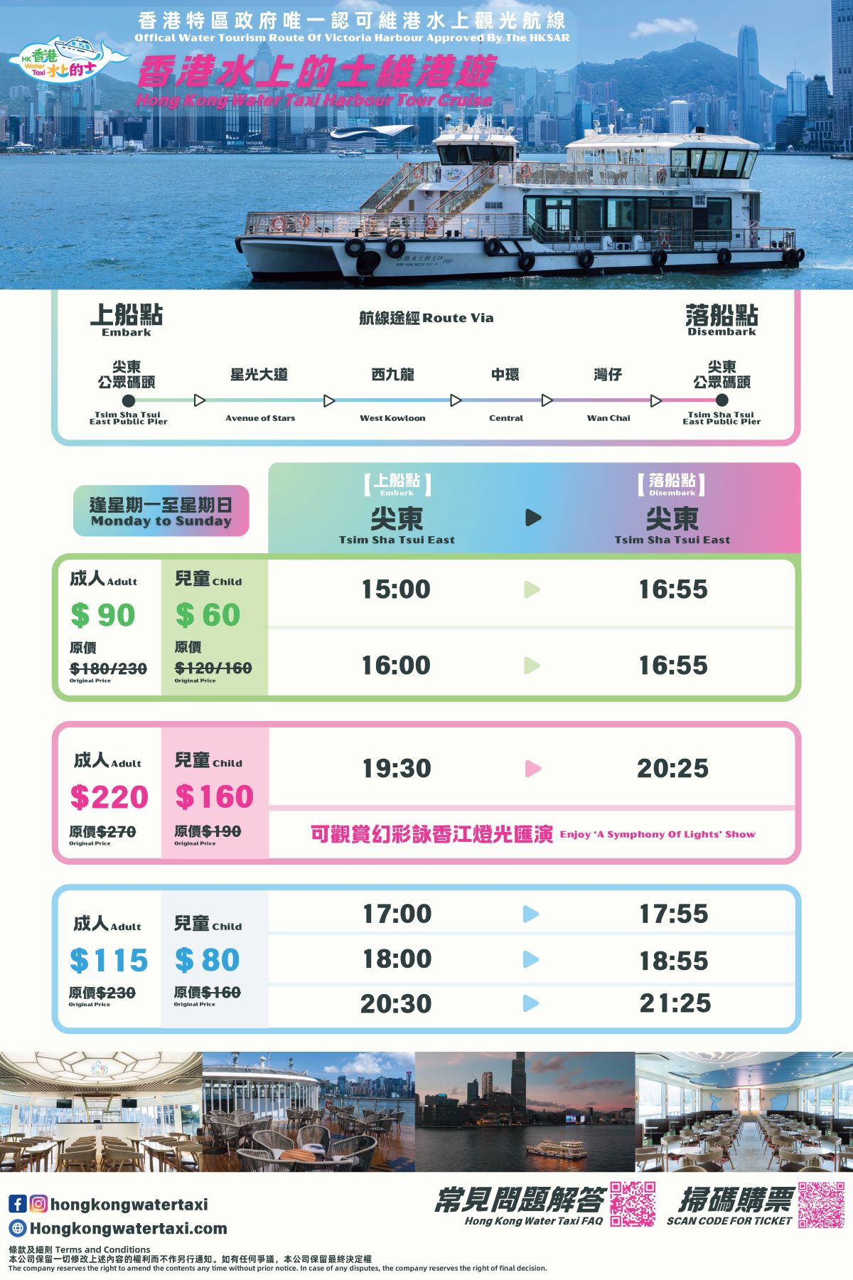 購買管道: 香港水上的士官網或紅磡碼頭、尖東碼頭及中環碼頭售票處